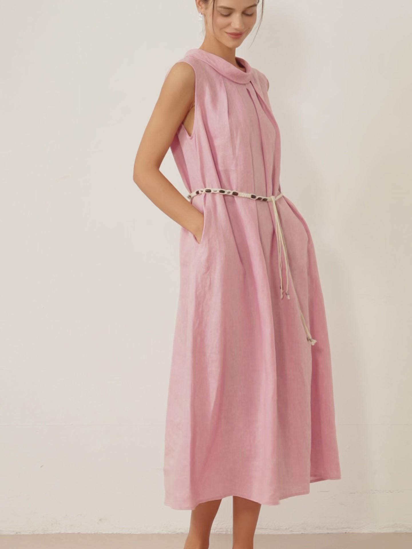Robe longue sans manches à col structuré 100% lin avec ceinture OPAL