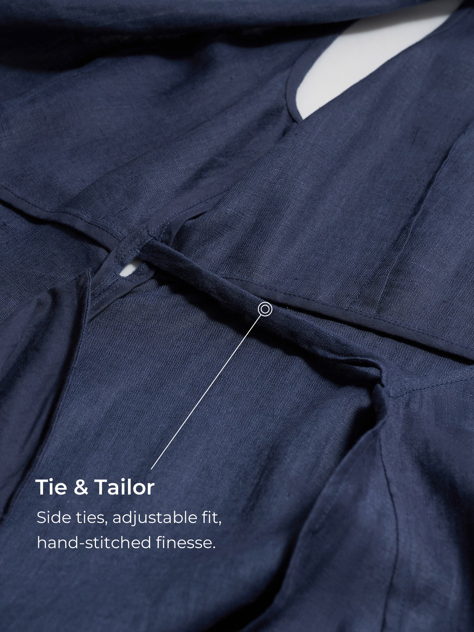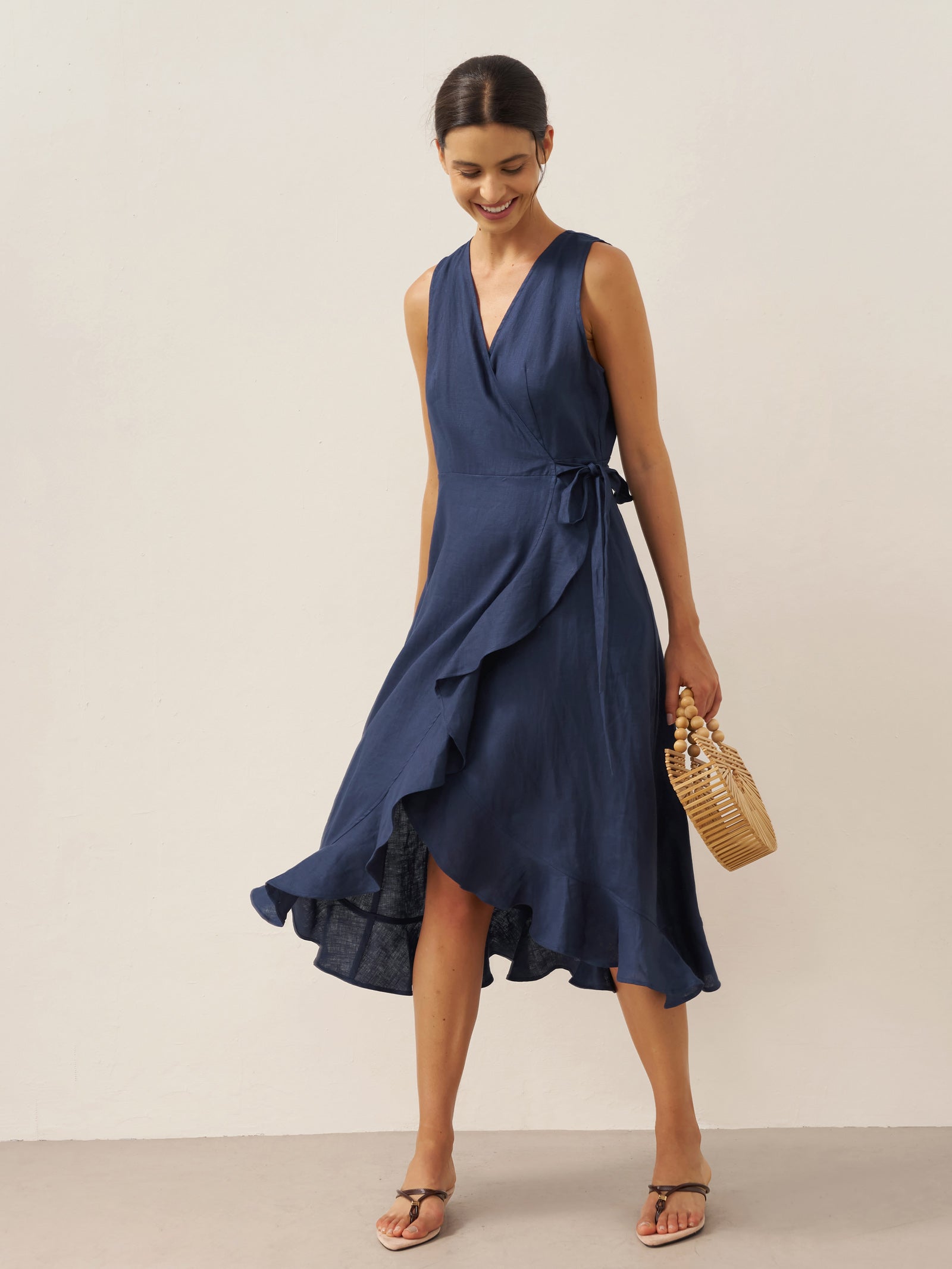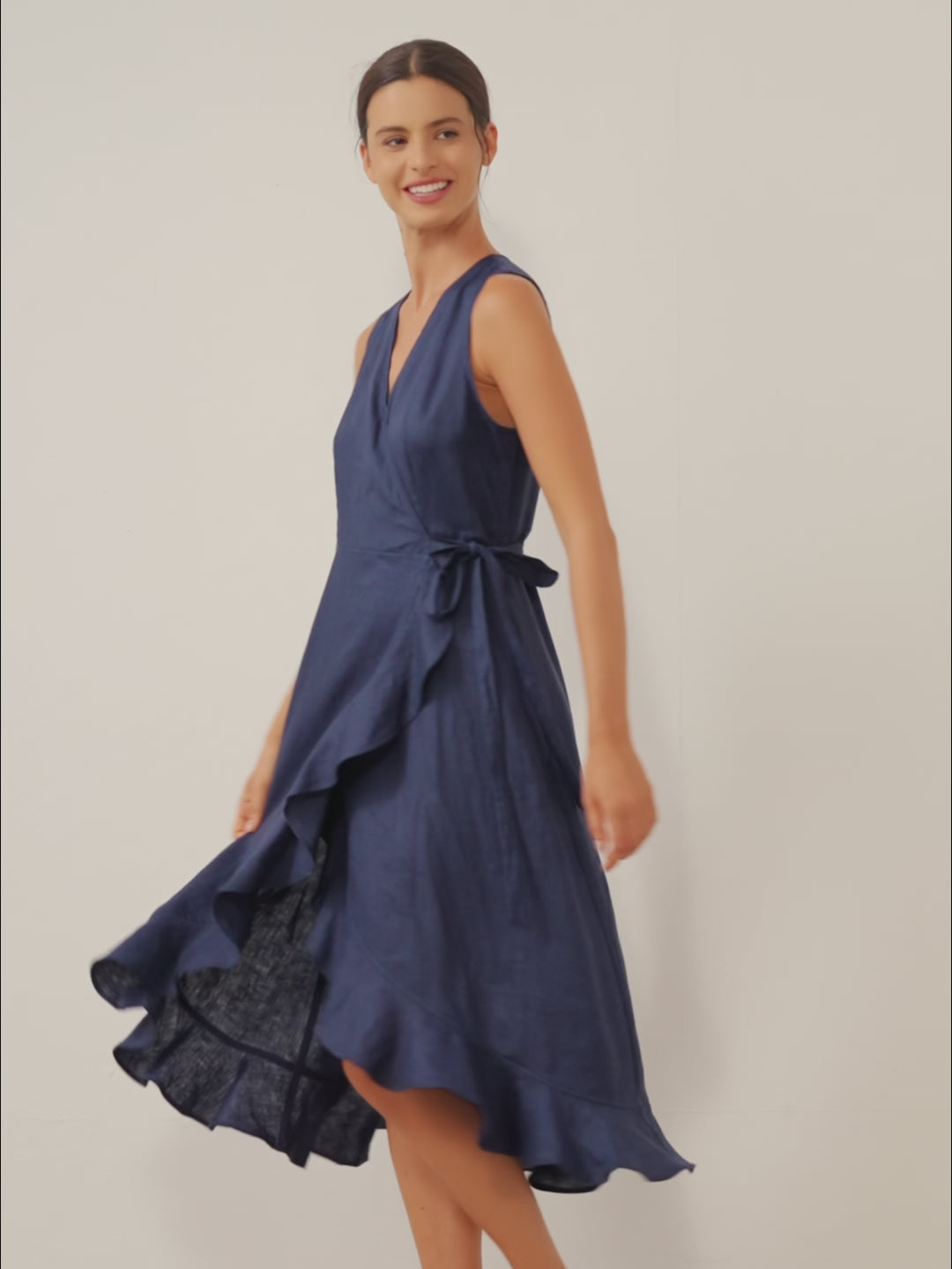 L'élégance romantique rencontre un design réfléchi dans cette robe en lin fluide.