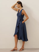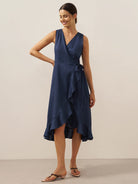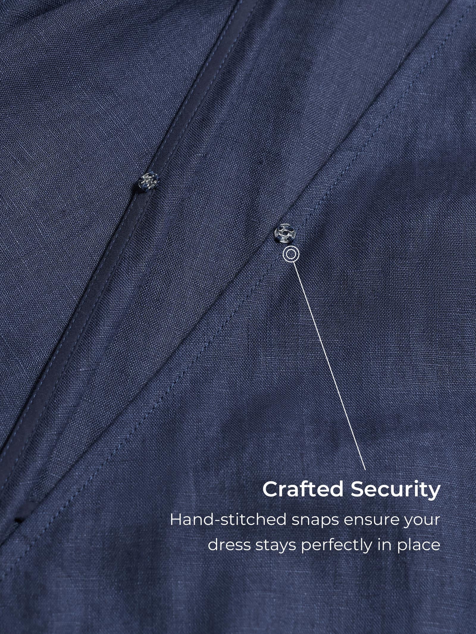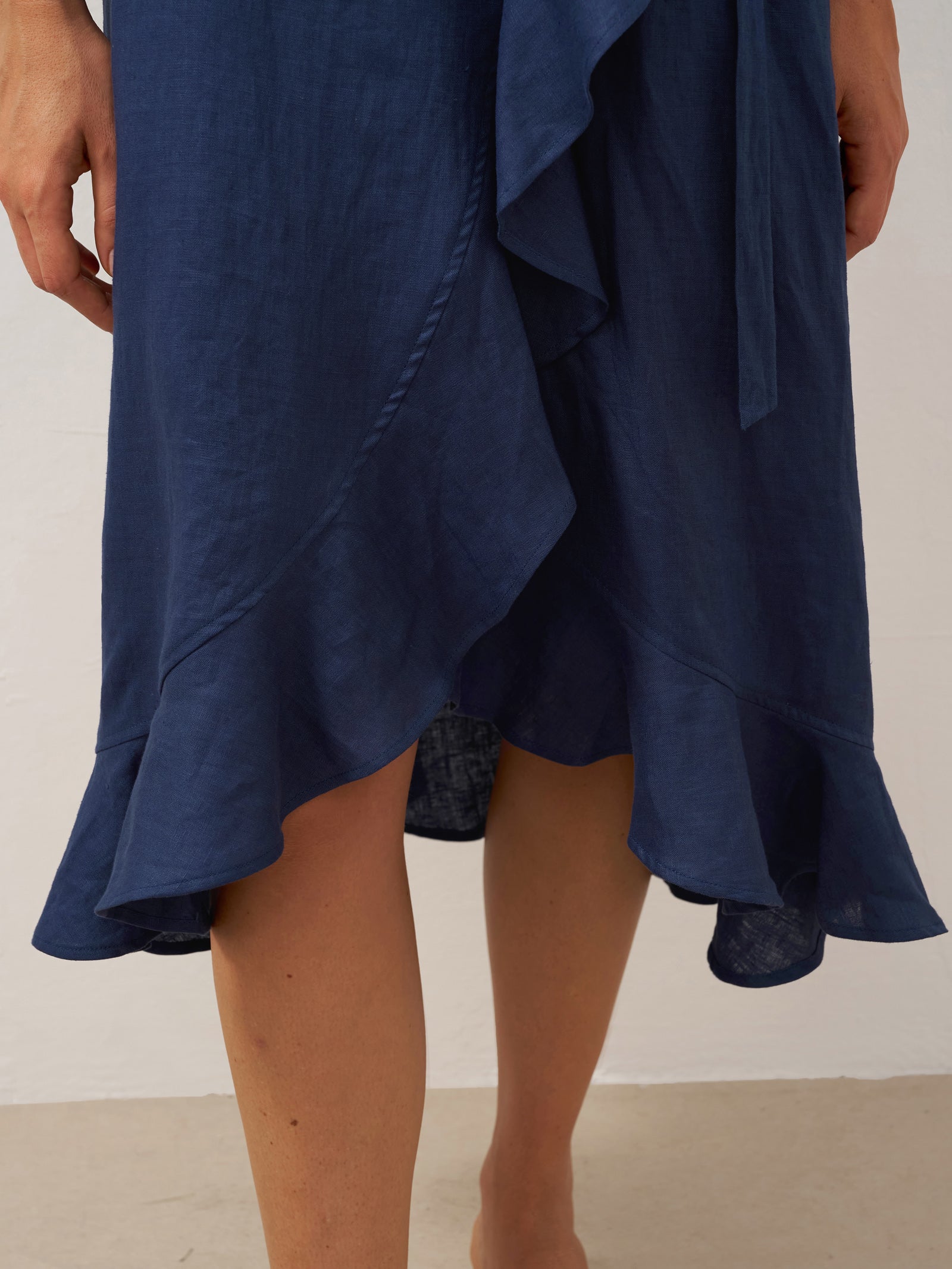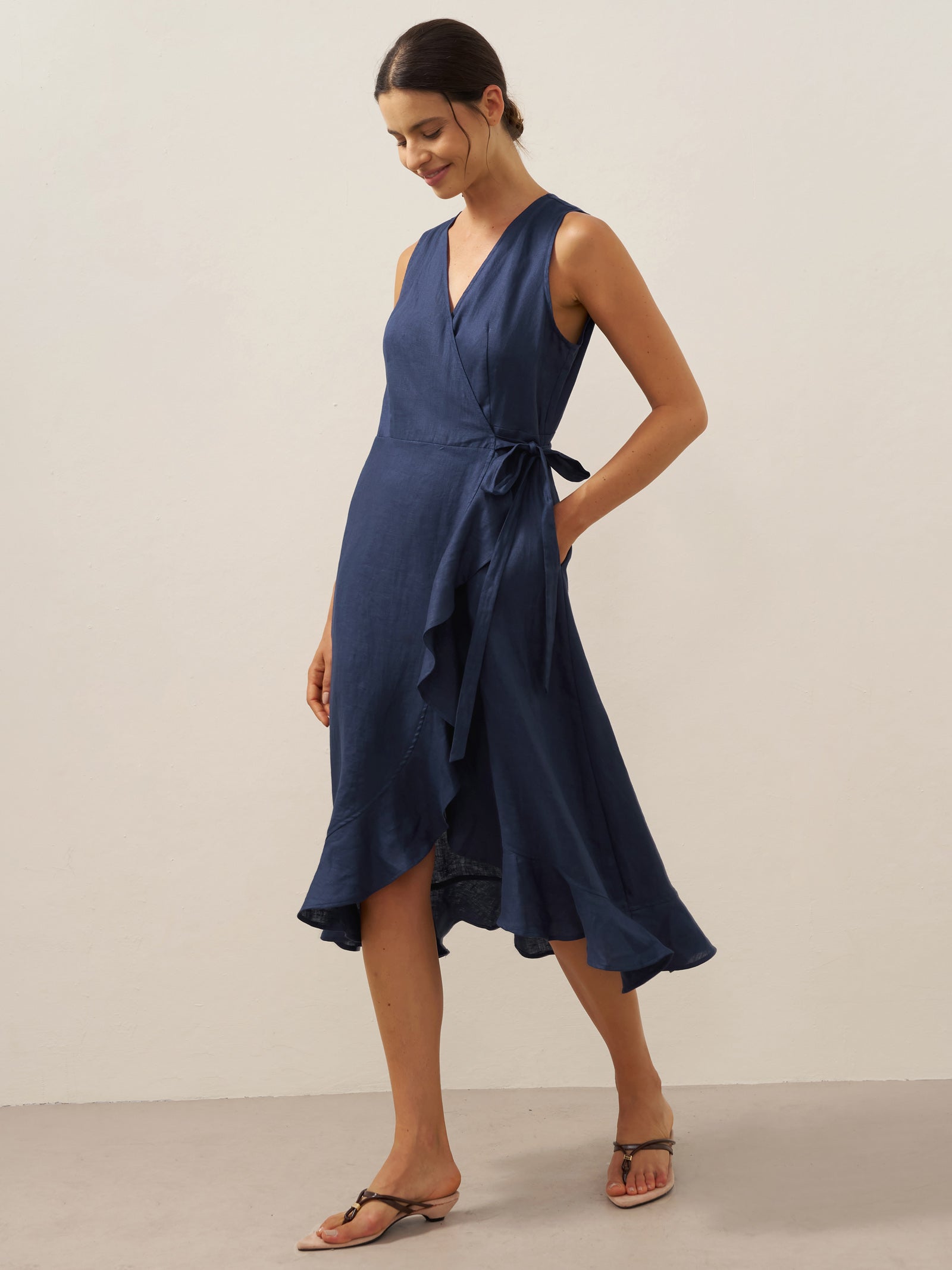 L'élégance romantique rencontre un design réfléchi dans cette robe en lin fluide.