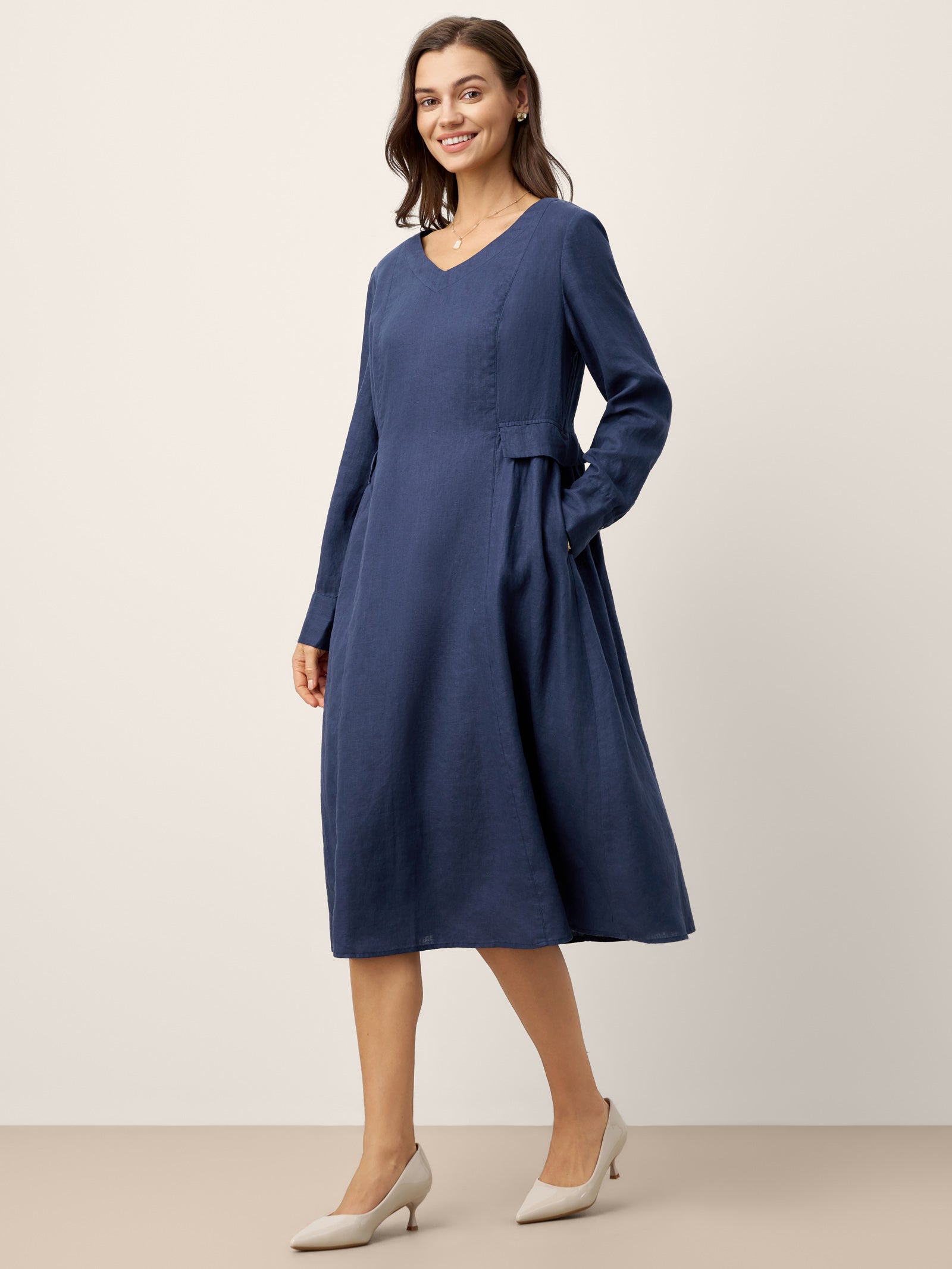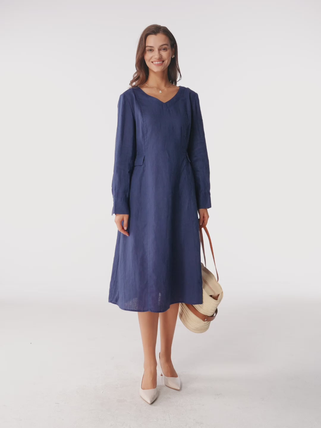 Robe midi en lin 100 % à taille froncée avec détail à rabat DIANA